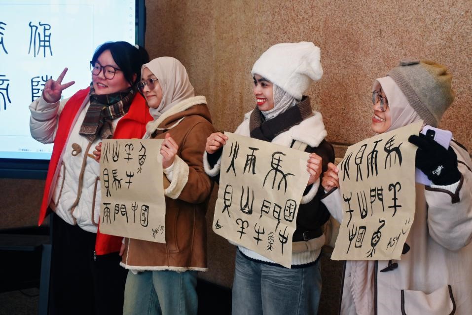 为确保服务质量,同学们接受了包括专业历史知识、讲解技巧乃至形体礼仪在内的系统培训,以挺拔自信的姿态面对中外游客。他们依据不同坑馆的特点,制定了分段、分主题的深度讲解方案,并巧妙设置“书写秦小篆”等互动环节,吸引青少年感受历史文化魅力。对于英语专业学生而言,这次实习是一次从“语言学习者”到“文化运用者与传播者”的关键跨越。他们以专业和热情,成功架起了千年文化遗产与现代公众、特别是国际友人之间的沟通桥梁,生动诠释了兵马俑的厚重价值,也践行了用外语讲好中国故事的时代责任。