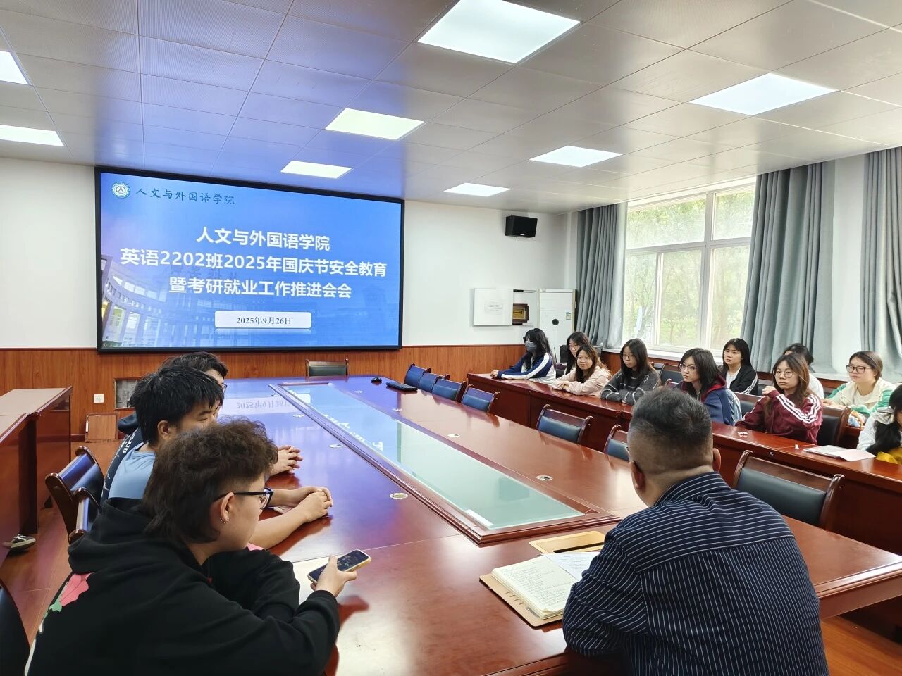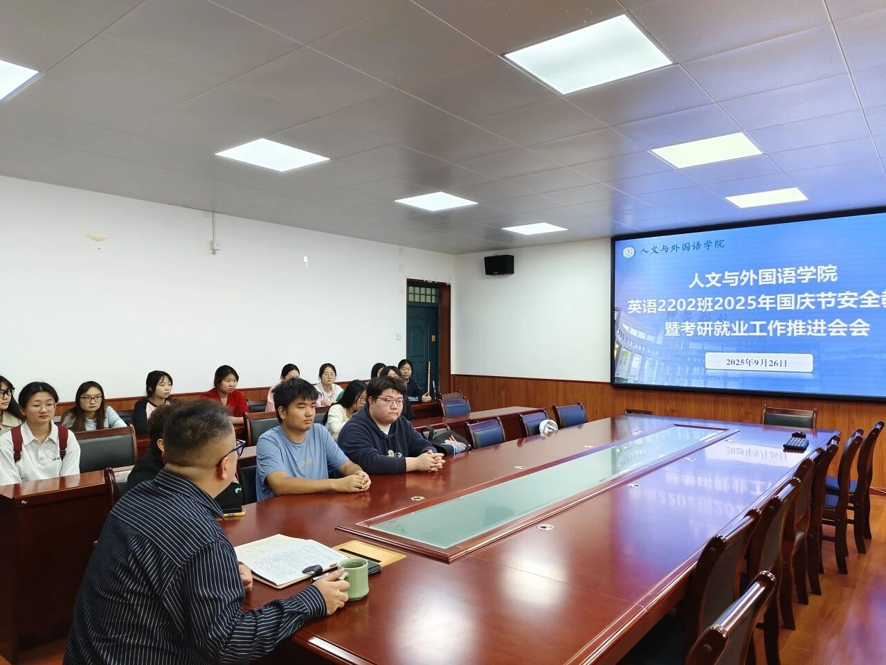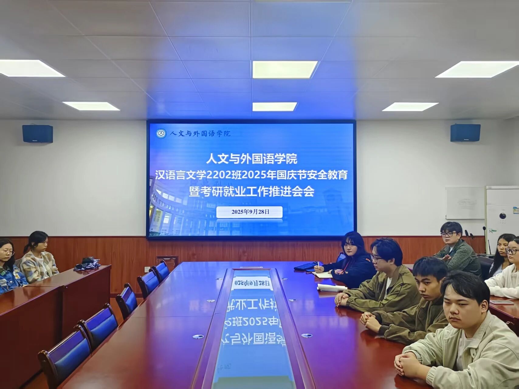 会议对主题团日活动、晚自习考勤、家庭经济困难学生认定等工作进行了安排。