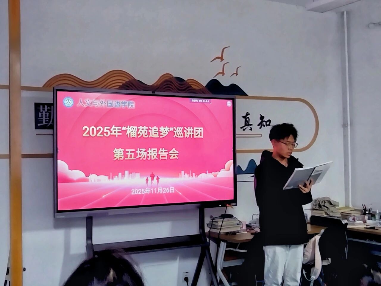为贯彻落实立德树人根本任务,充分发挥奖学金的育人和榜样引领作用,11月26日晚,雷竞技raybat竞猜于“一站式”学生社区举办2025年“榴苑追梦”第五场巡讲报告会,2024级、2025级学生代表参会。